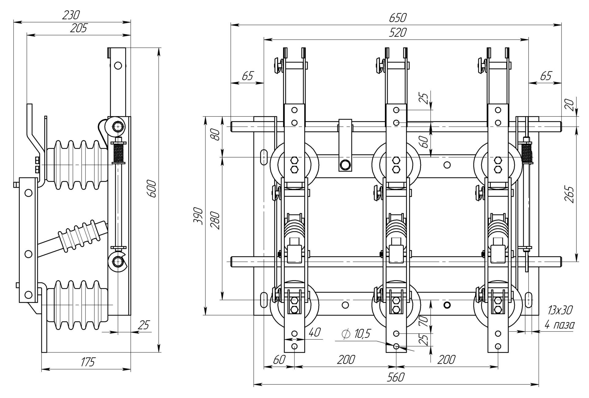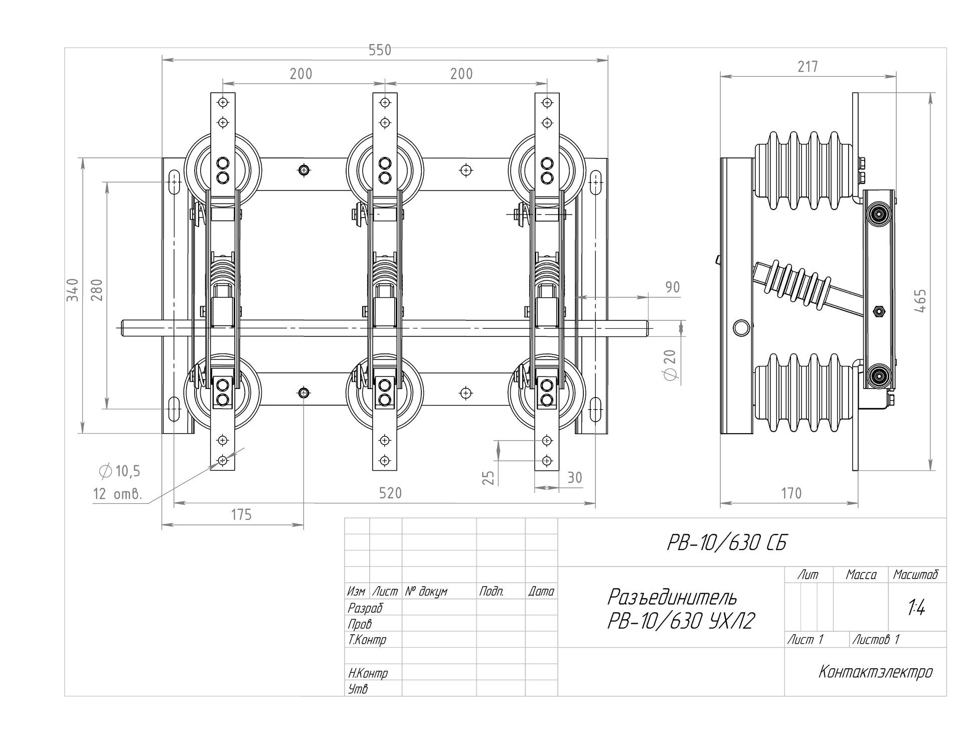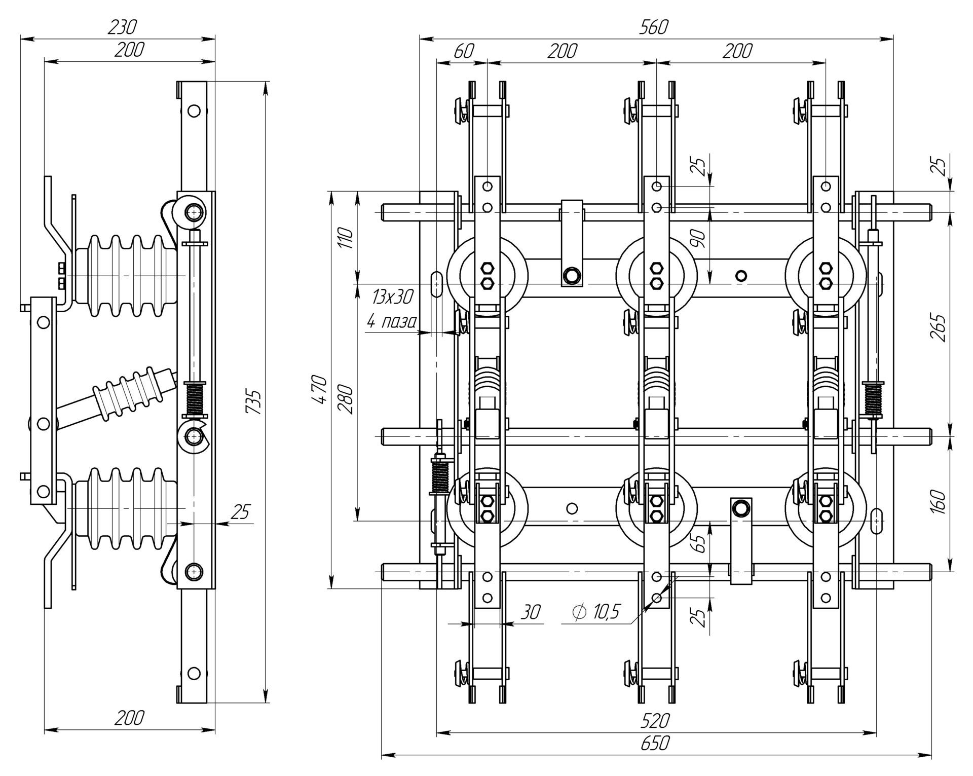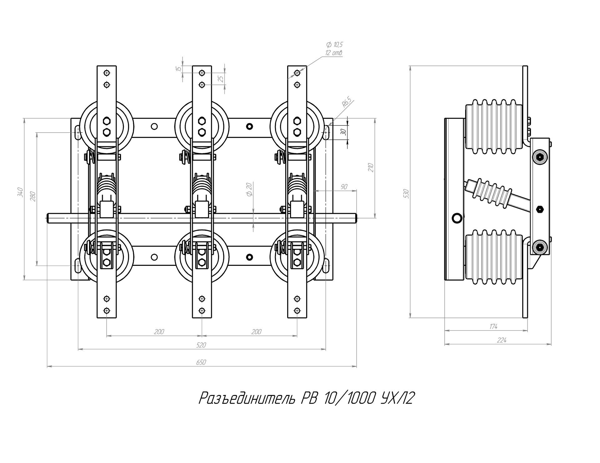 Разъединитель – электрический аппарат с видимым местом разъединения электрической цепи в воздухе, предназначен для включения и отключения под напряжением участков электрической цепи высокого напряжения при отсутствии нагрузочного тока.