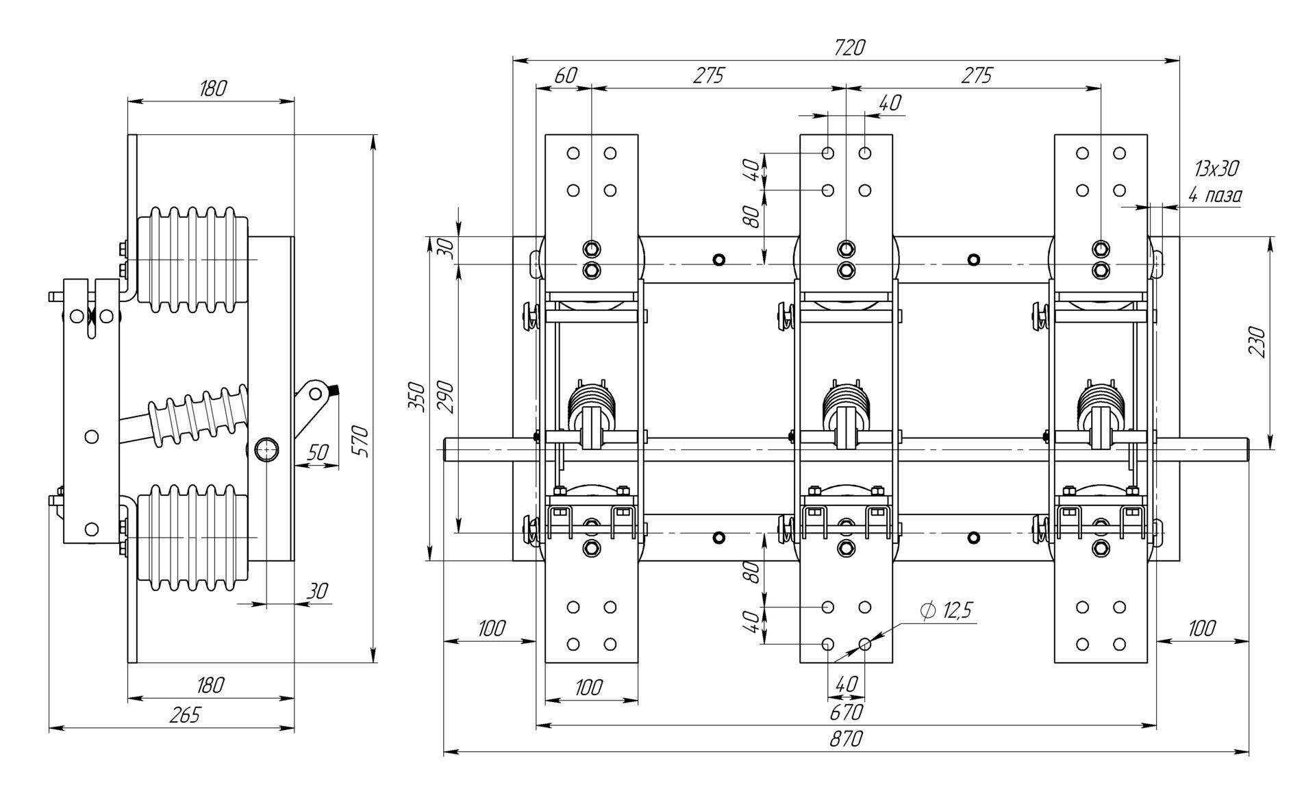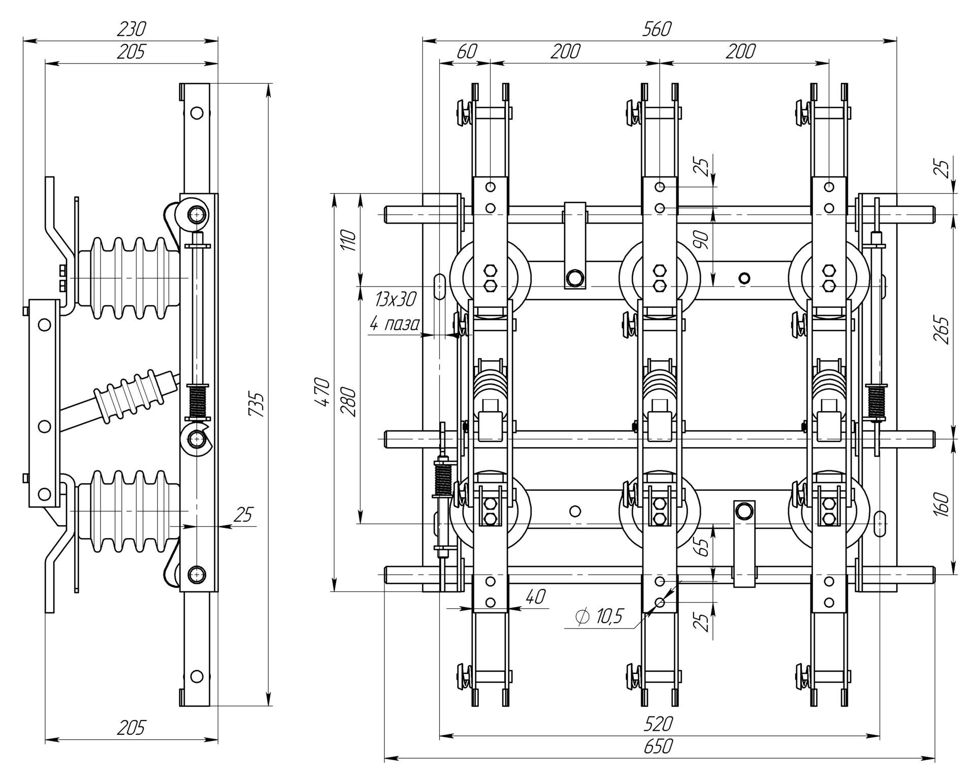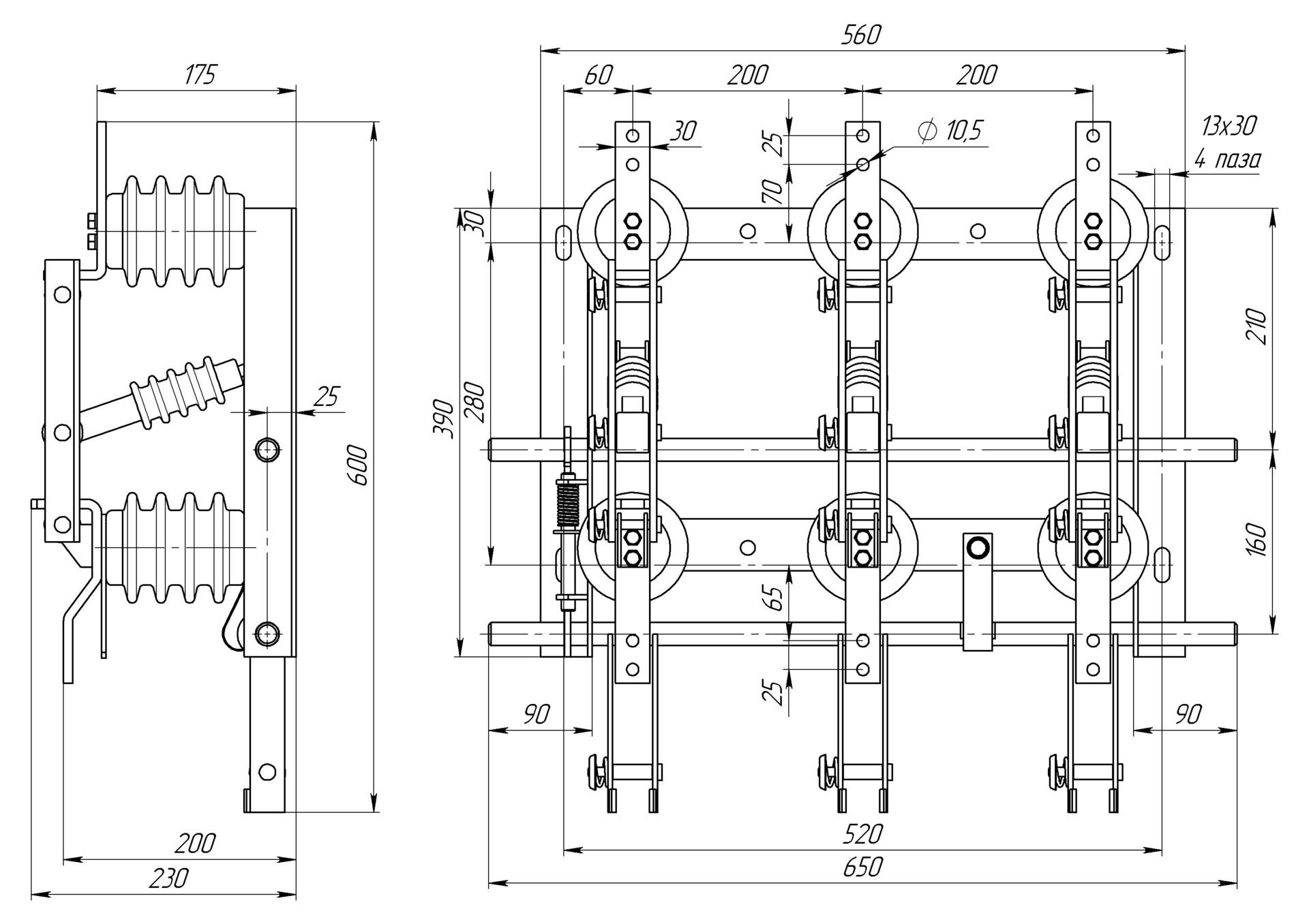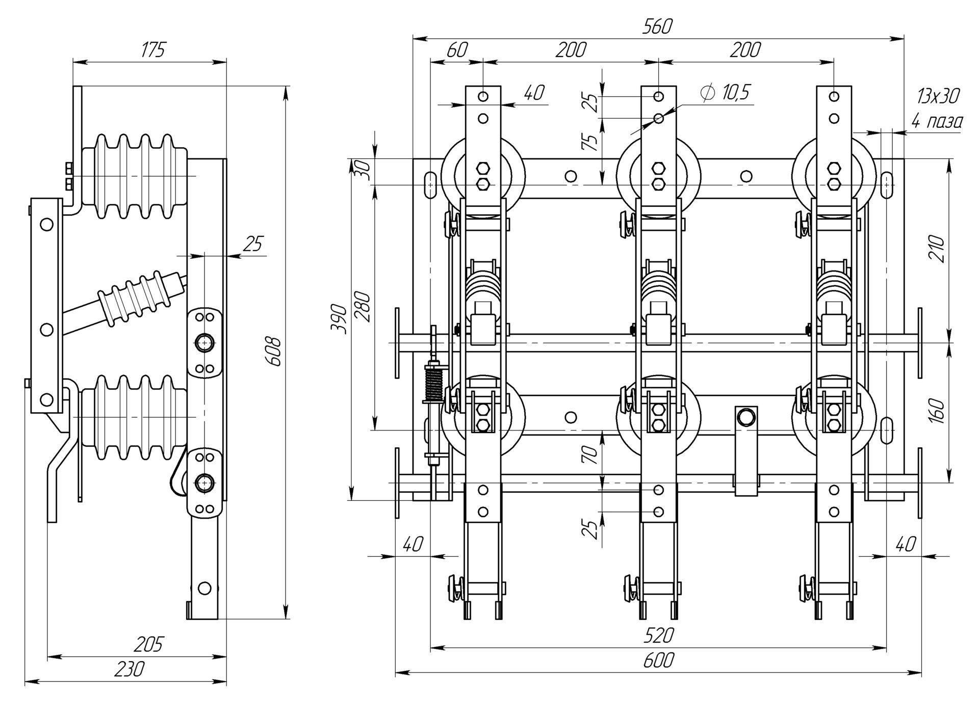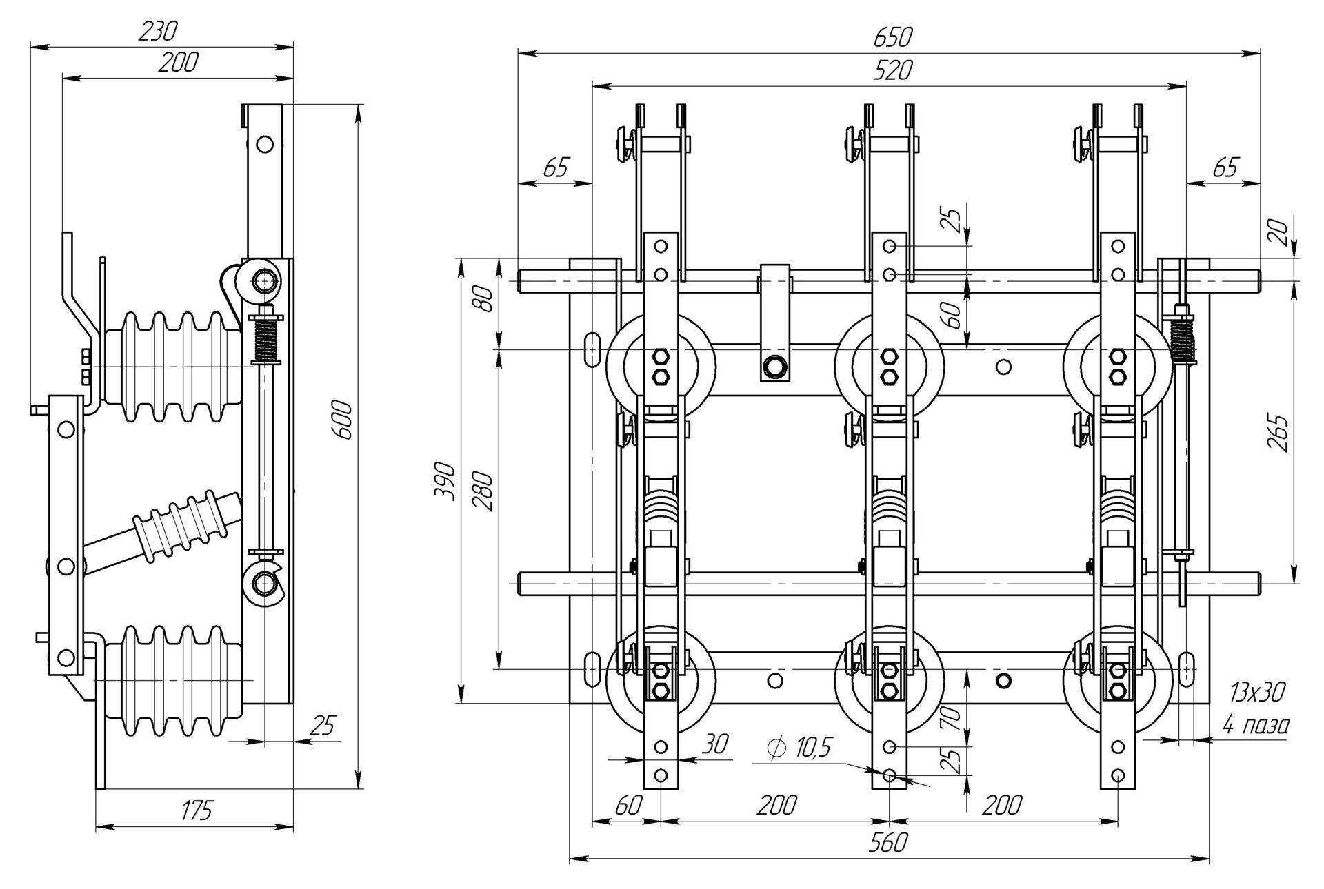 Разъединитель – электрический аппарат с видимым местом разъединения электрической цепи в воздухе, предназначен для включения и отключения под напряжением участков электрической цепи высокого напряжения при отсутствии нагрузочного тока.