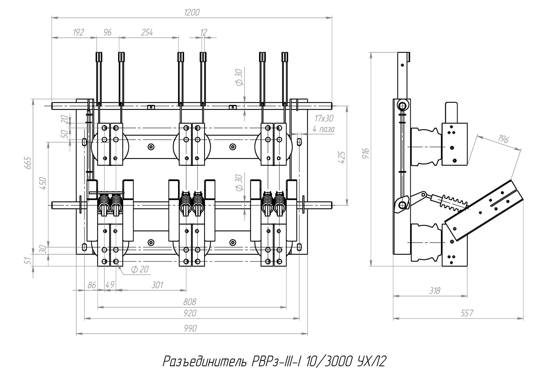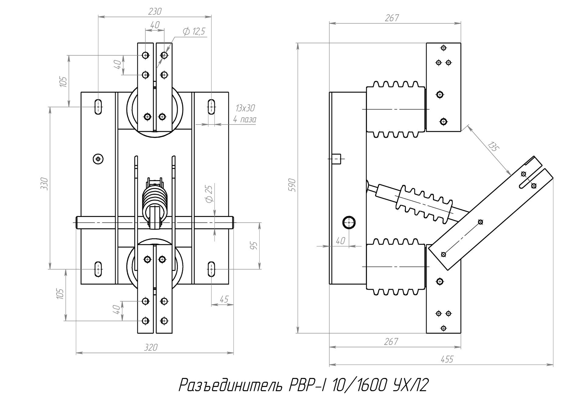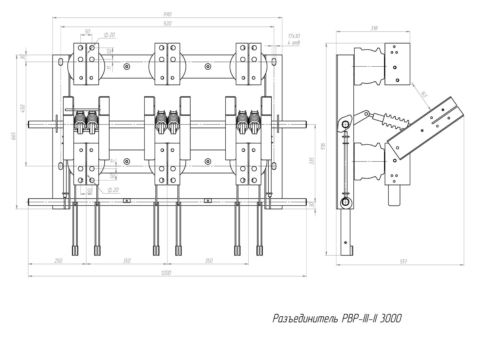 Разъединитель – электрический аппарат с видимым местом разъединения электрической цепи в воздухе, предназначен для включения и отключения под напряжением участков электрической цепи высокого напряжения при отсутствии нагрузочного тока.