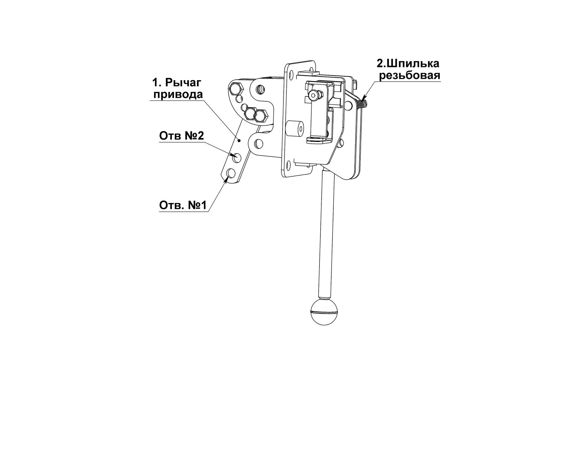 Положение рычага привода вертикально вниз. Этого положения добиваемся перестановкой рычага в отверстиях секторов привода и вращением регулировочной шпильки.